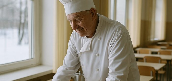 Ogni mattina la mensa scolastica si riempiva del solito rumore: il tintinnio delle pentole, il profumo del pane fresco e il vociare dei bambini nel corridoio. Il cuoco