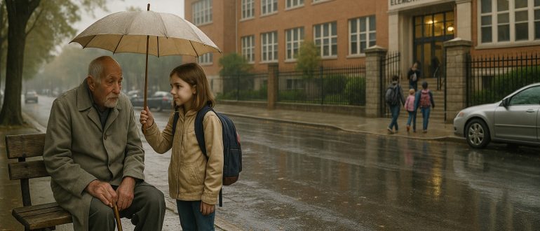 Il vecchio continuava a fissare il cancello della scuola ogni pomeriggio, finché un giorno piovoso una ragazza finalmente gli si avvicinò e gli fece la domanda che nessun